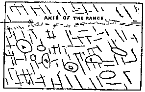 The Tuolumne middle region presents a sublime assemblage of glacier-born rocks, of which a general view may be obtained from the summit of Mount Hoffmann. These were overswept by the wide outlets of the great Tuolumne mer de glare. The Tuolumne Cañon outlet flowed across the edges of the best developed or north 35° east vertical cleavage planes, which gave rise to an extraordinary number of rocks, like Fig. 8, with their split and fractured faces invariably turned down stream, and round abraded sides up against the ice-current.