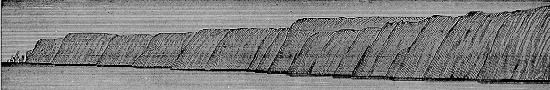 In general views obtained in sailing along its southern coast the phenomena presented seemed essentially the same as have been described elsewhere—hills, valleys, and sculptured peaks, testifying in all their main trends and contours to the action of ice. A range of mountains of moderate height extends from one extremity of the island to the other, a distance of about sixty-five miles, the highest point as measured by Lieutenant Berry being twenty-five hundred feet above the sea.