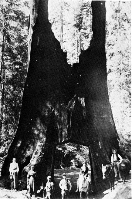 [click to enlarge] The Big Oak at Big Oak Flat about 1870. [Frontispiece to 1959 printing] |