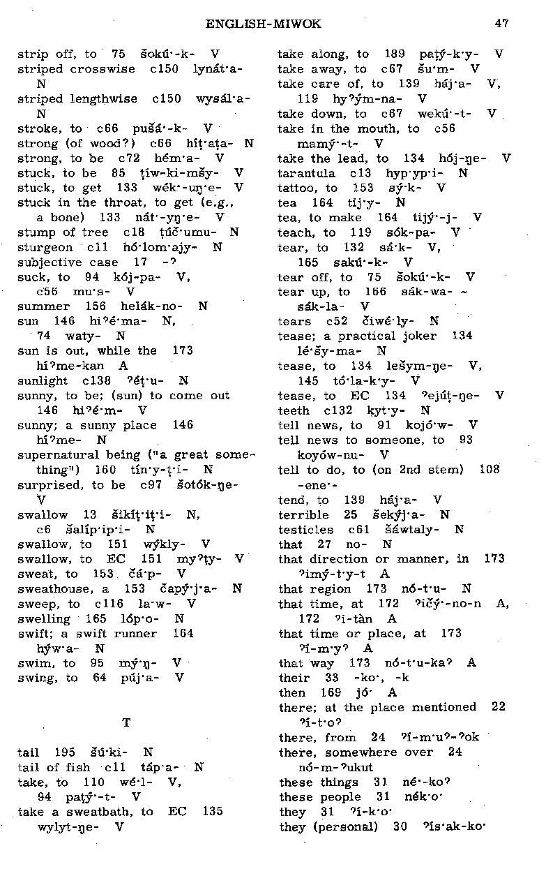 Yosemite > Library > Central Sierra Miwok Dictionary > S, T (Page 47) >