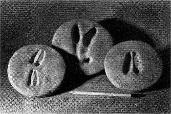From cast by M. V. Hood Deer tracks. Left, fawn; center, very soft mud; |