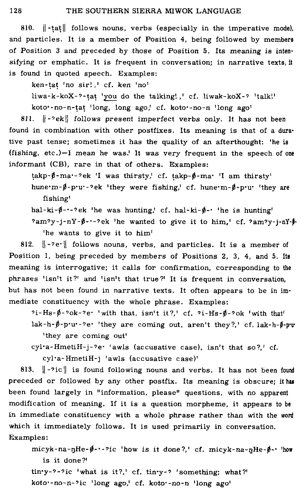 Yosemite > Library > Southern Sierra Miwok > Chapter 8: Postfixes (Page 128) >
