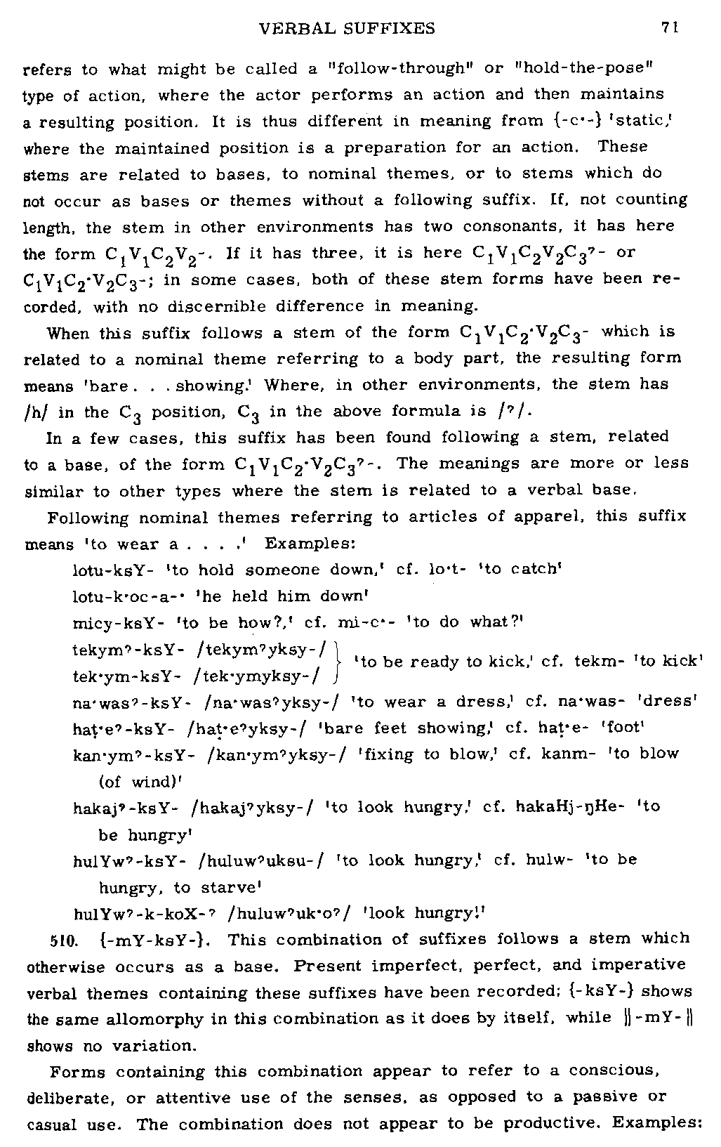 Yosemite > Library > Southern Sierra Miwok > Chapter 5: Verbal Suffixes (Page 71) >