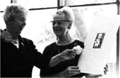 Mary Tresidder with Della Hoss and one of her linoleum prints. |